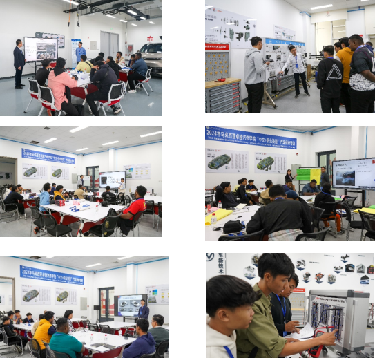加强汽车维修技能培训,提升学生汽修本领是本次培训的主要目的。作为与华晨宝马有深度合作的学校,我校中德学院宝马项目班学生在宝马集团全球标准化考试和学徒生满意度调查中均列第一,办学成果显著。本次培训的技能提升课程主要在中德学院开展,共开设智能新能源汽车体验、汽车发动机电控技术、汽车车灯系统体验及测量等五门课程,帮助马来西亚学生拓宽汽车维修知识视野,掌握高水平汽车维修技能。